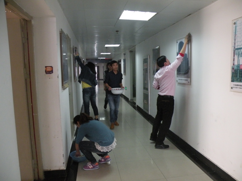 331日下午,公司團委組織機關團員開展義務勞動,對公司所在九華國際大廈1516樓走廊兩側的宣傳圖畫、宣傳欄以及消防櫥窗進行徹底擦洗。擦洗走廊兩側一幅幅精品工程,感知著公司發展歷程,“小伙伴們”心中油然而生“我為省安人而驕傲”!