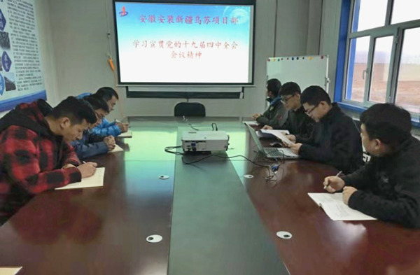 按照公司黨委《關(guān)于做好黨的十九屆四中全會精神學(xué)習(xí)宣傳工作的通知》要求,11月13日上午,西北分公司黨支部結(jié)合工作實際,分別組織機關(guān)及新疆烏蘇中水回用項目部全體黨員干部群眾召開了理論學(xué)習(xí)會,集中對黨的十九屆四中全會精神進行學(xué)習(xí)宣貫。
