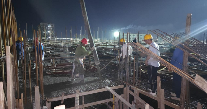 “端午”期間,壹石通項目職工堅守一線,為確保節點計劃如期完成,掀起大干浪潮。為保證壹石通項目氫氧化鎂車間設備進場,項目部提前策劃、精心組織,加大人材機的投入力度,明確施工現場的重難點,確保目標任務的落實。目前,主要工作為氫氧化鎂車間一與綜合車間的主體結構,保證節點目標,生產投入機械設備3臺,勞務人員30名。
