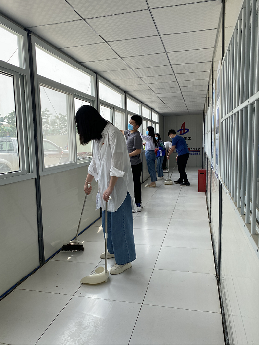本次主題團日活動在房建(裝飾)分公司潤迅數據中心(合肥)產業園項目部進行。來到項目部,團員青年們結合疫情防控要求,協同項目部職工組織開展了大范圍的消殺大掃除。隨后列席參加了安全健康衛生講座和公司紀委書記、工會主席李寬旭上的黨史學習教育專題黨課等。