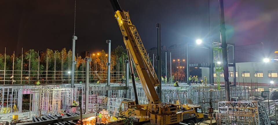 “開局即是決戰,起步就要沖刺”,在項目現場,我們能感受到的是項目全體職工心往一處想、勁往一處使的勇氣與信心。截至11月16日,該項目已完成二層樓板壓型鋼板安裝,二層樓板混凝土澆筑完成50%,二層墻板繼續作業,墻體內水電預埋已經穿插開始進行。一層墻板內水電預埋基本完成,開始一層吊頂內水電暖通安裝工作。