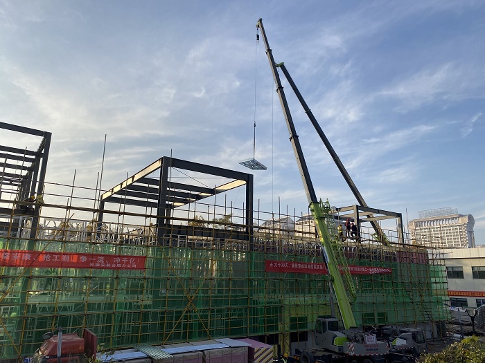 為搶抓工期,項目部迅速調集人力,自開工以來,項目一線施工人員一直保持在150人左右,采取24小時輪班制度,兩班倒的方式,“人歇工地不停”,在嚴格實施安全防疫的同時加班加點搶時間,趕任務,確保項目現場施工不斷推進,即使是在不利于施工作業的雨天,大家也合理安排施工計劃,主動放棄休息,在已經封頂的一層、二層結構中進行水、電、通風、內部裝飾等工作,全力以赴加快項目建設進度。