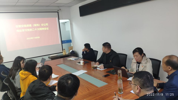 11月9日上午,房建(裝飾)分公司黨支部組織全體黨員、在肥干部職工、項目經理召開學習研討黨的二十大精神專題會議。會議要求,全體干部職工要統一思想,凝心聚力,把學習二十大精神與與分公司實際工作相結合,對照年初各項指標任務,努力強弱項,補短板,狠抓落實,推動分公司各項工作上臺階。