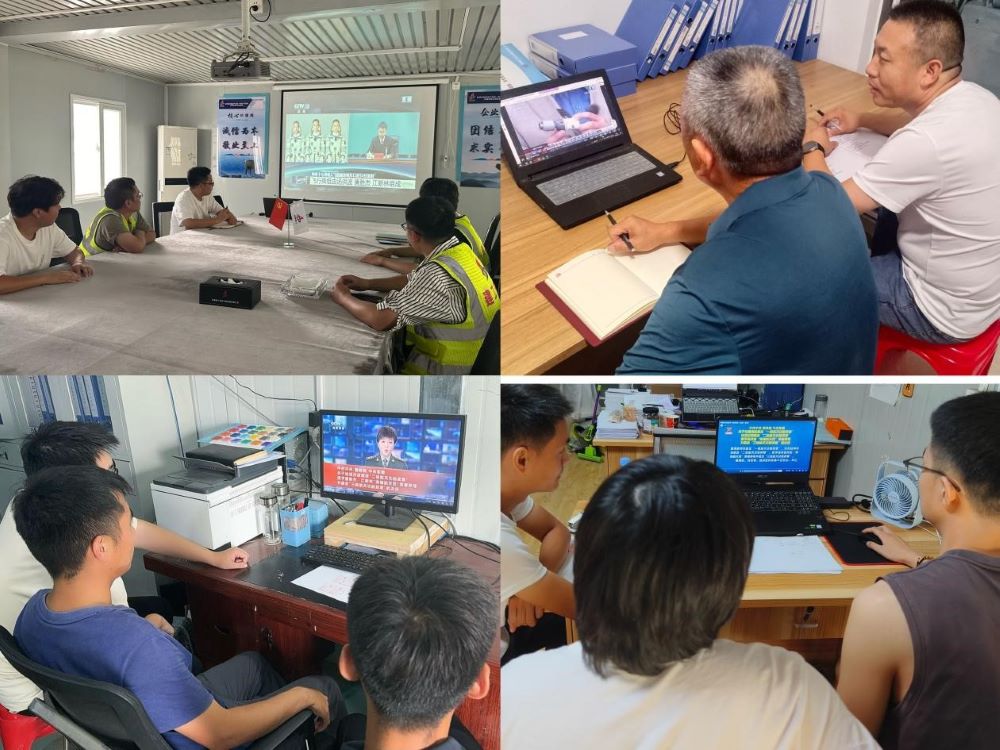學習中,分公司機關和各項目部分別集中觀看了中共中央、國務院、中央軍委《關于給湯洪波頒發“二級航天功勛獎章” 授予唐勝杰、江新林“英雄航天員”榮譽稱號并頒發“三級航天功勛獎章”的決定》網絡視頻。