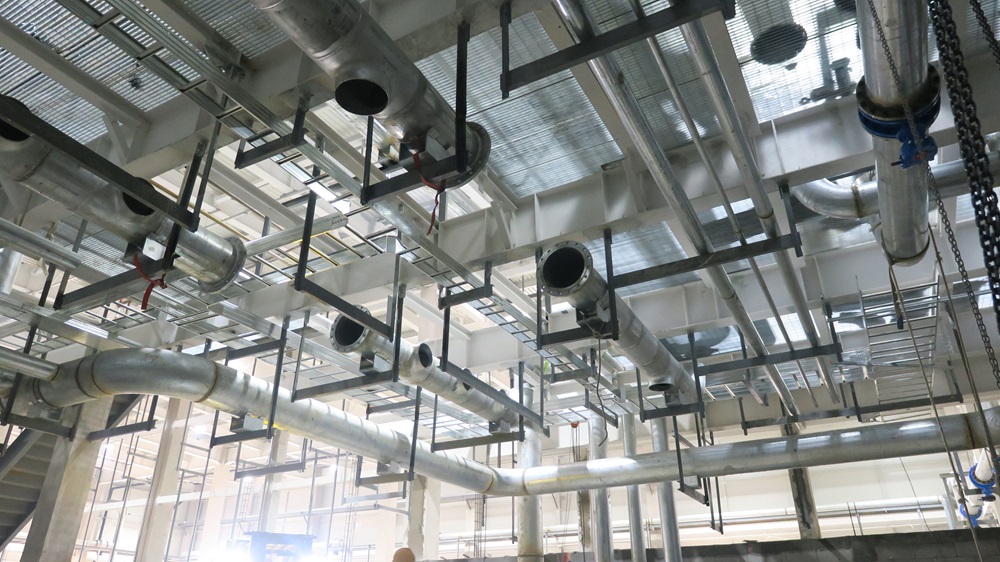 截至目前,焊裝車間空調(diào)水系統(tǒng)、給水系統(tǒng)、消防水系統(tǒng)已全部完成系統(tǒng)試壓工作。焊裝車間屋頂風(fēng)機(jī)、風(fēng)機(jī)控制電纜、動(dòng)力電纜也已全部安裝完成。與此同時(shí)本項(xiàng)目的能源中心正在有條不紊的推進(jìn),冷水機(jī)組、冷卻塔、水泵等大型設(shè)備陸續(xù)到場(chǎng)。