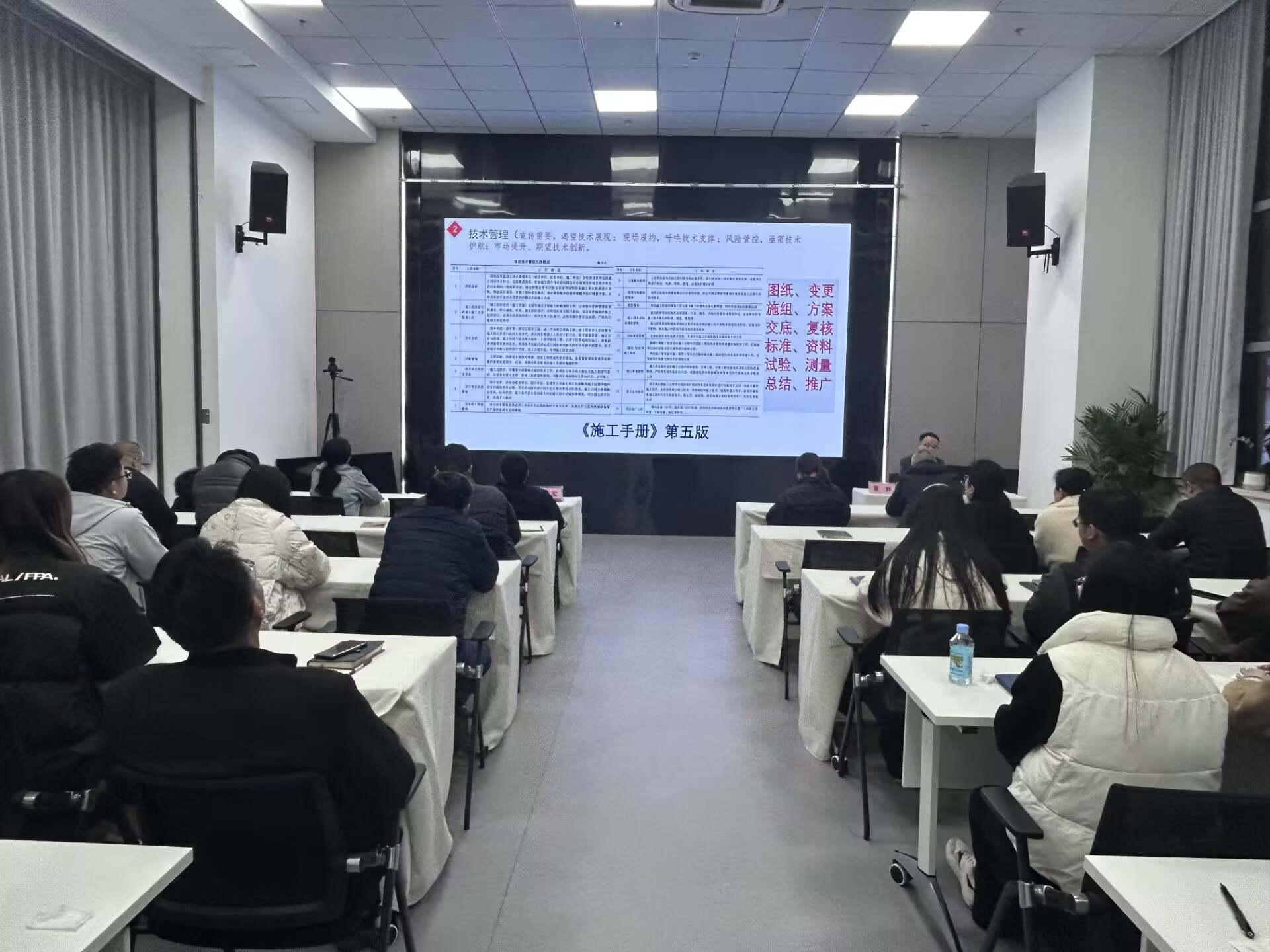 夏輝以中央發(fā)布的《一張思維導圖帶大家看2025年政府工作十大任務》的切入點,強調(diào)了高質(zhì)量發(fā)展和創(chuàng)新驅(qū)動的重要性。隨后他從技術管理、機電工程體系、機電工程安裝工藝細部節(jié)點做法優(yōu)選、AI應用等方面對機電工程基礎知識進行了細致解讀,講解了技術在企業(yè)運營中的核心作用。就《聚焦機電主責主業(yè) 走“專精特強”之路行動方案》(第一版)與參培人員進行深入交流。